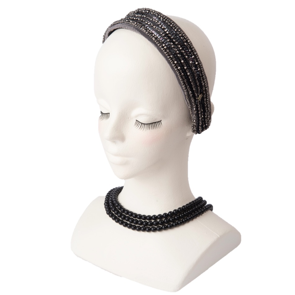 魅力的な上品な光を放つセピアカラーのビジューのセピア。ビーズとスパンコールの絶妙なセピアカラーのハーモニーは大人の魅力が上品に引き立ちます。派手すぎないのでコーディネイトと程よく調和してオールシーズン楽しんでいただけます。